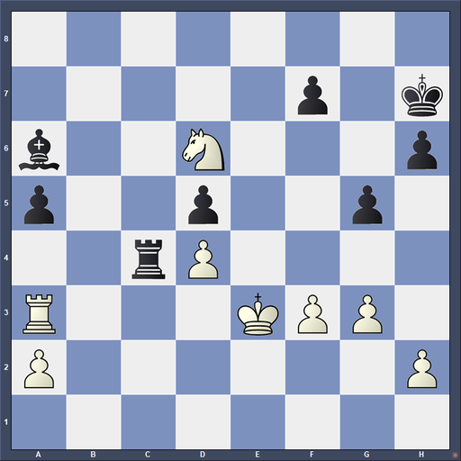 Hier spielte unser Spitzenbrett nicht etwa 35...Tc2?, weil dies nach 36.f4 g4 37.f5! f6! 38.Txa5 Te2+ 39.Kf4 Tf2+ nur zu Remis durch Dauerschach führen würde, sondern 35...Tc6! Greift den Springer an, was überraschend zu einer Gewinnstellung führt. Es folgte 36.Sxf7 Tc2 (jetzt erst!) und nun stellt sich heraus, dass Weiß nach 37.f4 g4 38.f5 Te2+. 39.Kf4 Te4 Matt gesetzt wird! Weiß versuchte noch, mit 37.Sxg5+ hxg5 38.f4 im Trüben zu fischen, konnte sich aber nicht mehr retten.