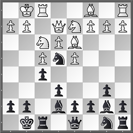 Das Auflösen des Isolanis durch den Vorstoß d5 führt hier zu einem drastischen Abfall der Stellungsspannung. Der Vorstoß wäre kräftig, stünden bereits die Türme auf den zentralen Linien. Die leicht zu erratende Folge: Remis nach 18 Zügen.