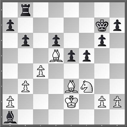 Allen Ernstes oder von allen guten Geistern verlassen zieht Weiß hier 29. Sb1?, eine Kapitulationserklärung, die sagen will: „Ich stell die Figuren schon mal in die Ausgangsstellung zurück für eine neue Partie.“ Bernhard sieht das genauso und erlöst seinen Gegner in wenigen Zügen.